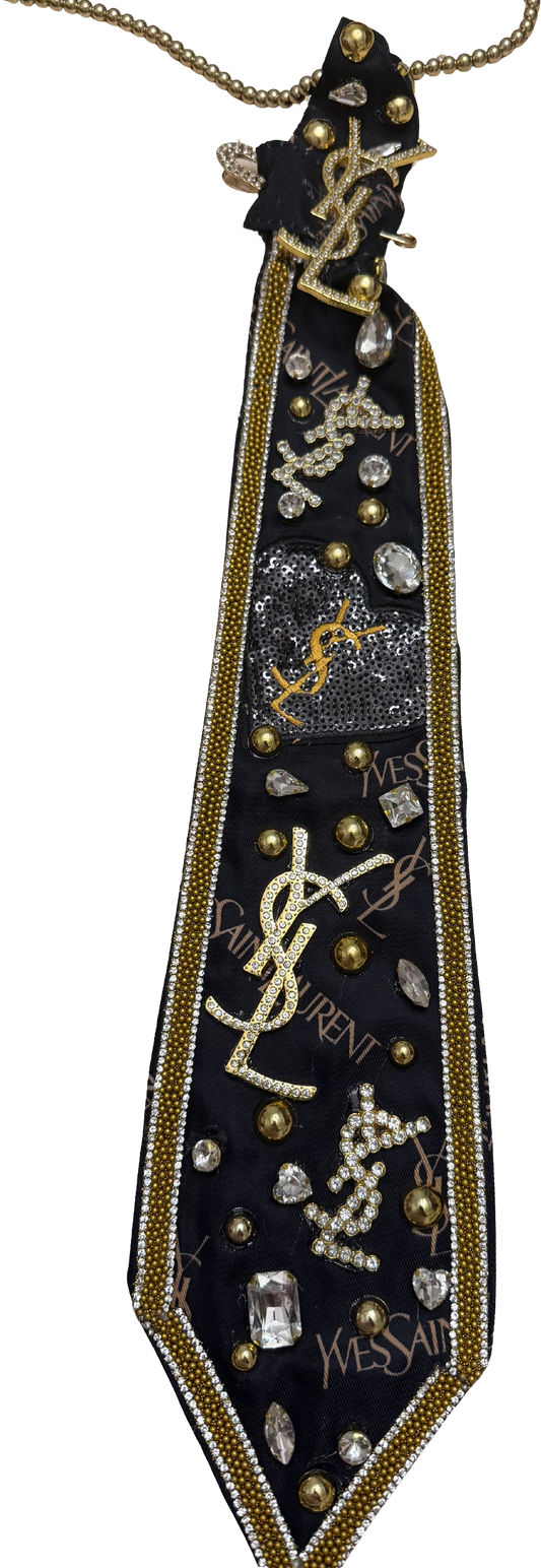 Legacy Luxe Couture Tie – Midnight Gold Crystal & Rhinestone Tie