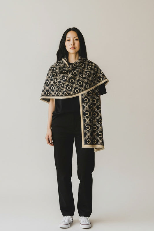 Parisian Midnight Toile Wrap – Luxury Cashmere-Like Legacy Luxe Shawl