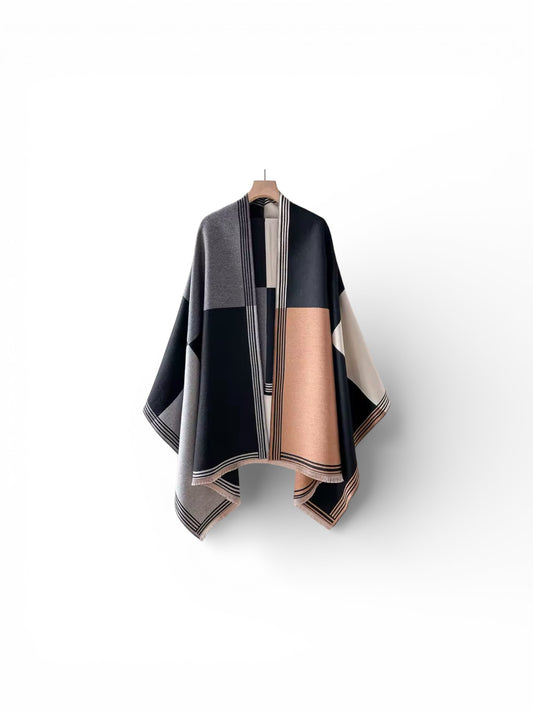 Monarch Colorblock Luxe Shawl Wrap – Soft Cashmere-Feel Poncho