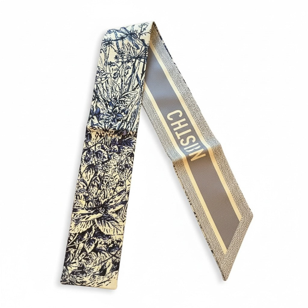 Elevate your handbag with the Legacy Ivory Toile Garden Twilly. Featuring a classic ivory-and-navy toile print with a chic designer-inspired border, this satin-style scarf adds effortless elegance to any look. Perfect for wrapping handles, tying bows, or adding a stylish accent. Limited quantity.