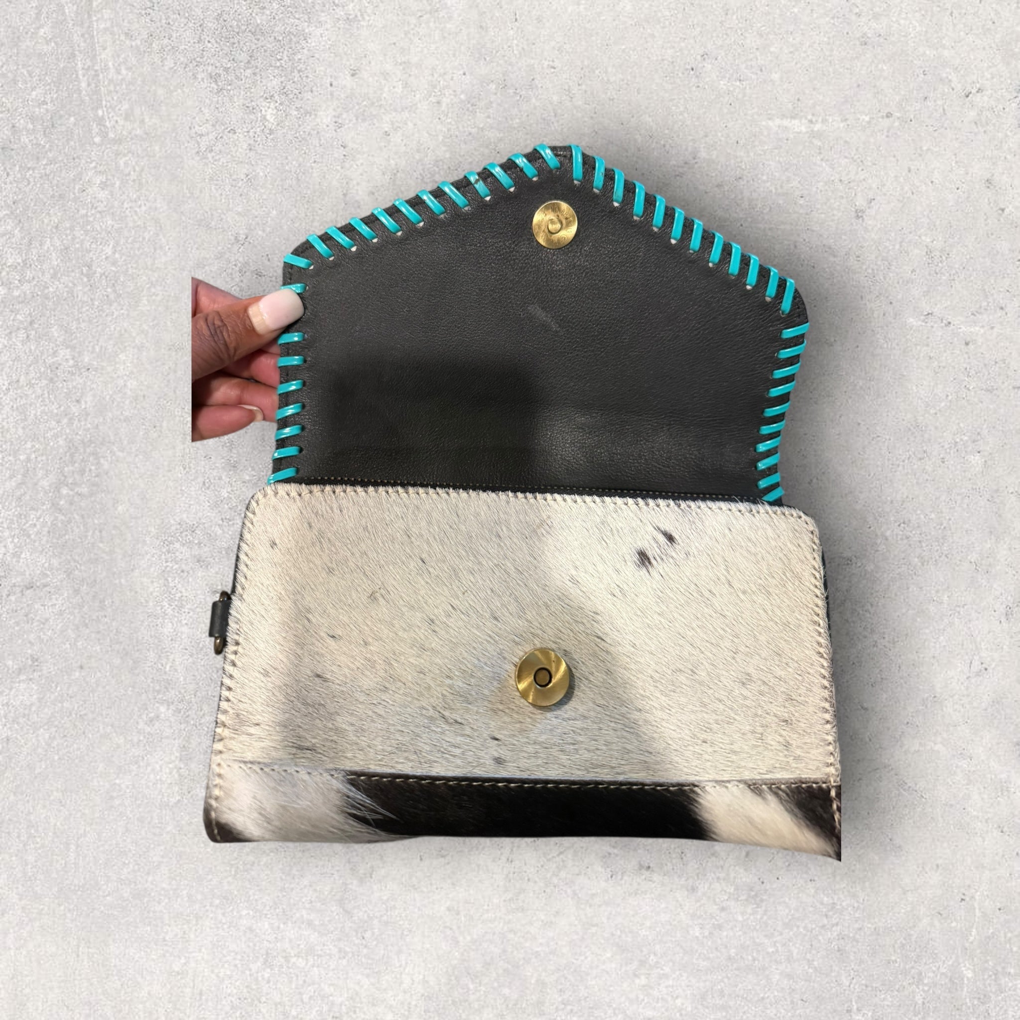Turn heads with this Saddle Bloom Cowhide Crossbody Wallet, a one-of-a-kind creation that blends artisan craftsmanship with Western couture charm.